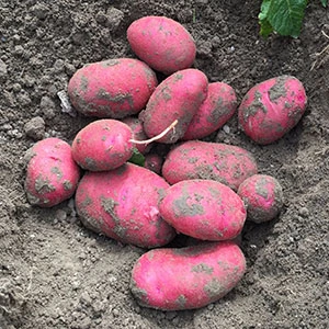 крупные клубни овальной формы ярко-малинового цвета, в количестве